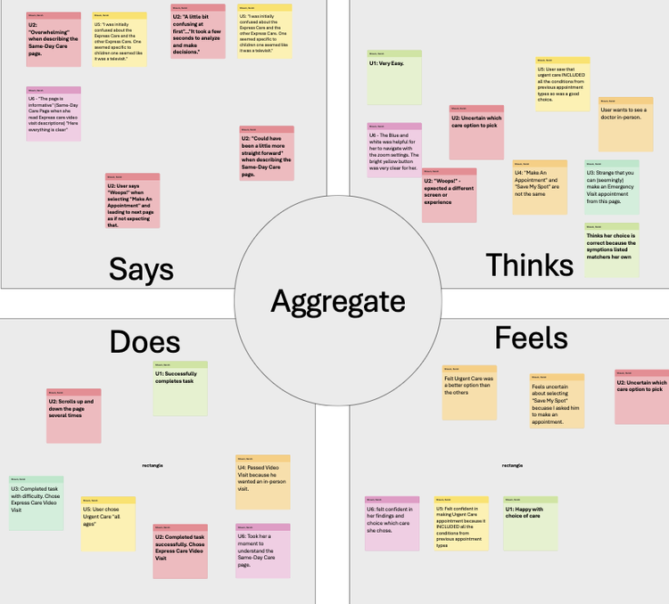 Users struggled to differentiate between care options (Express Care vs. Urgent Care vs. Emergency Care)
